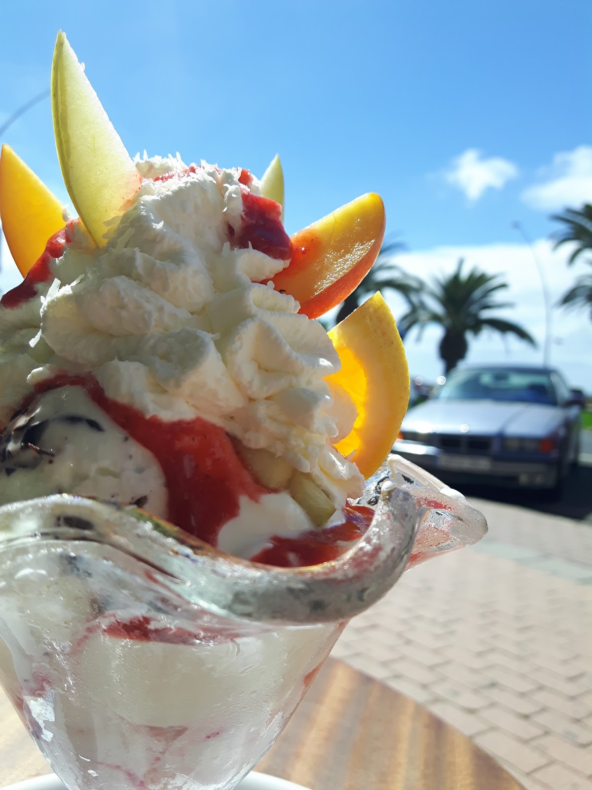 Dieser Barfuß-Spaziergang war etwas für die Sinne. Das Meerwasser erfrischte die Füße und der Wind trug das Salz auf die Haut. Ungefähr eine Stunde genoss ich die Ruhe der Insel und das Rauschen des Meeres. Belohnt habe ich mich mit einem Besuch beim EISDEALER in Jandia. Selbstgemachtes Eis, eine erfrischende hauseigene Limo und die freundliche Bedienung sorgten für eine entspannte Spazierpause.